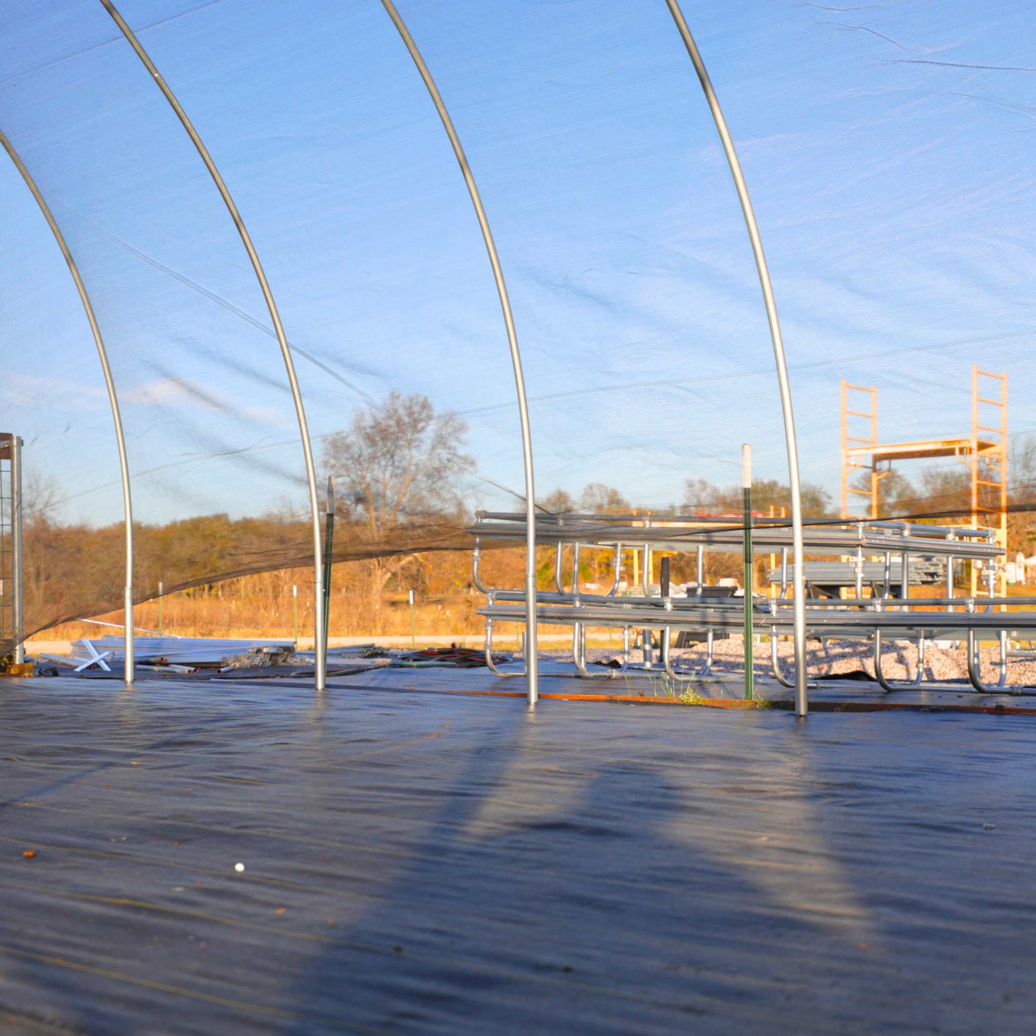 • All USA-made and fabricated galvanized 16-gauge hoops and ridgepole with clear coating on pipes